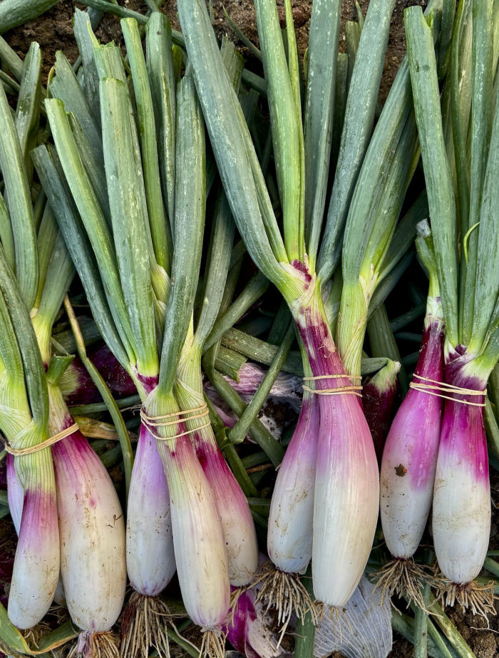 La cebolleta morada no solo aporta sabor: eleva el plato con su presencia. Es una variedad más fina, más delicada y muy valorada en la cocina de autor.