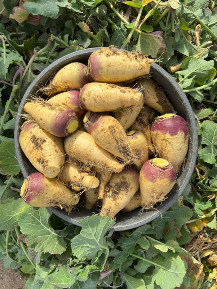 Porque la cultivamos como antes: en tierra abierta, sin pesticidas agresivos y respetando el ciclo natural. La dejamos engordar al frío, que es cuando se vuelve más dulce y rica. La rutabaga no es solo un tubérculo: es historia, salud y sabor. Y te la llevamos del campo… como recién salida de él.